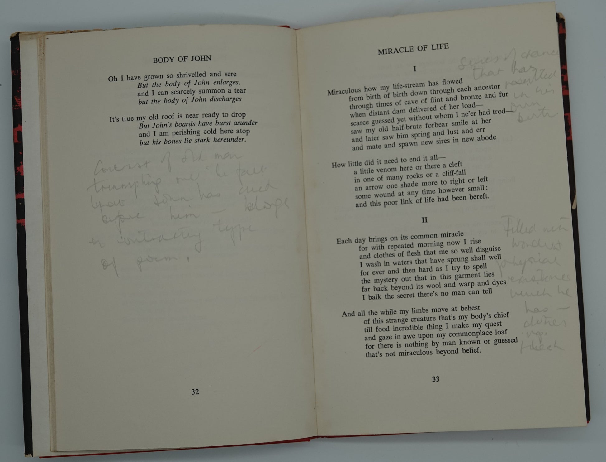 Red hard cover with striking dust jacket, hand written notes by former owner through-out. 113pp.