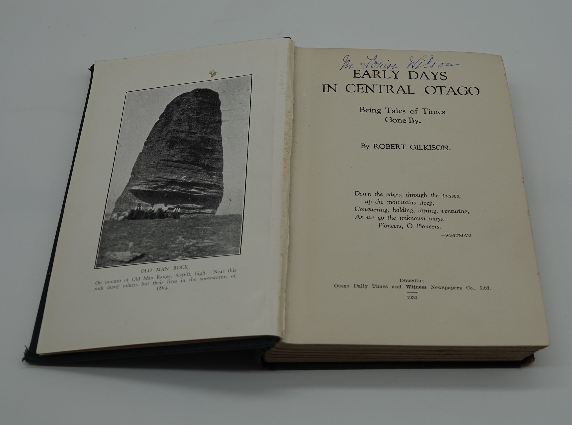 Author Robert Gilkison. Published by the Otago Daily Times in 1930 it features 215 pages with numerous b&w plates.