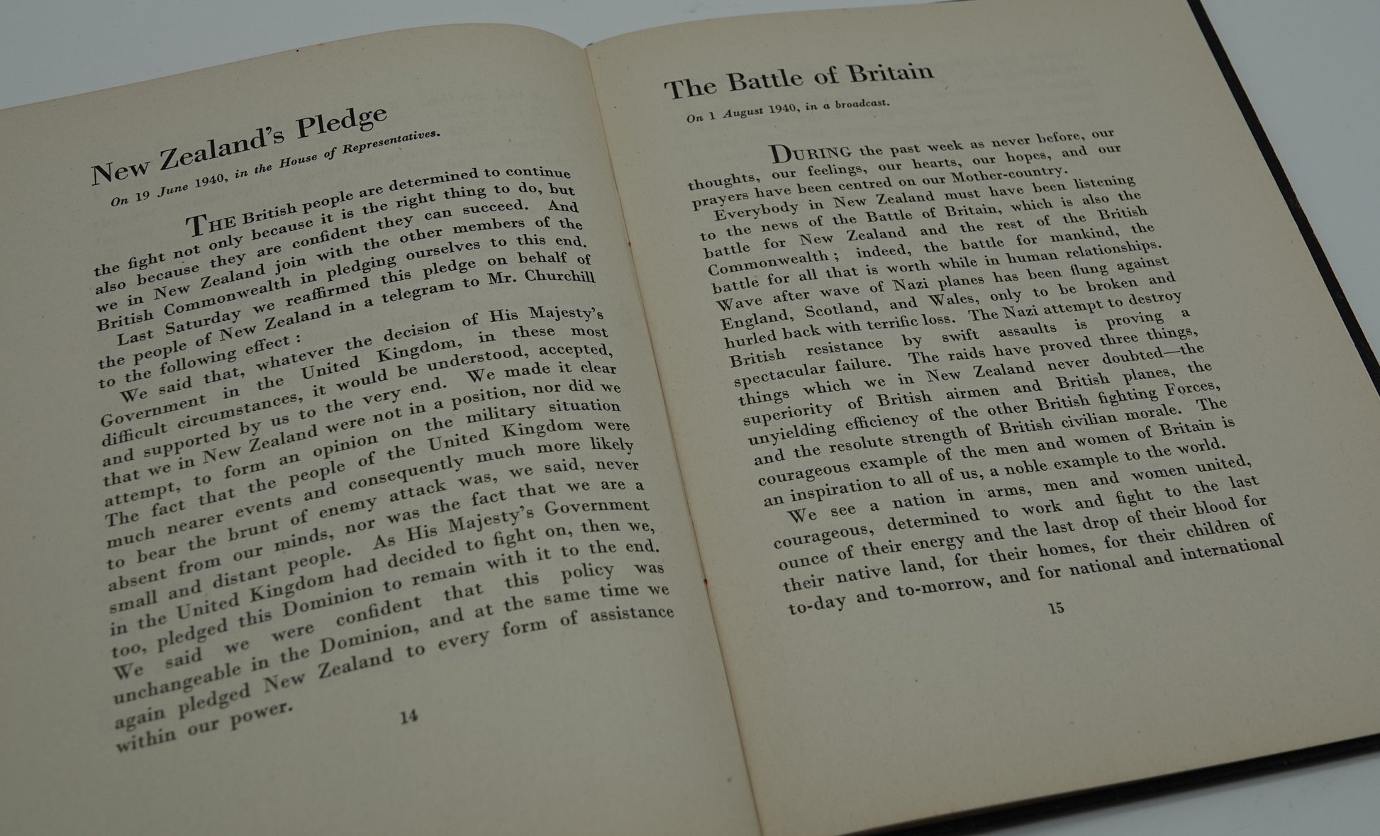 This is an important and rare historical treasure - a published record of speeches from our PM at a time of global peril during WWII.