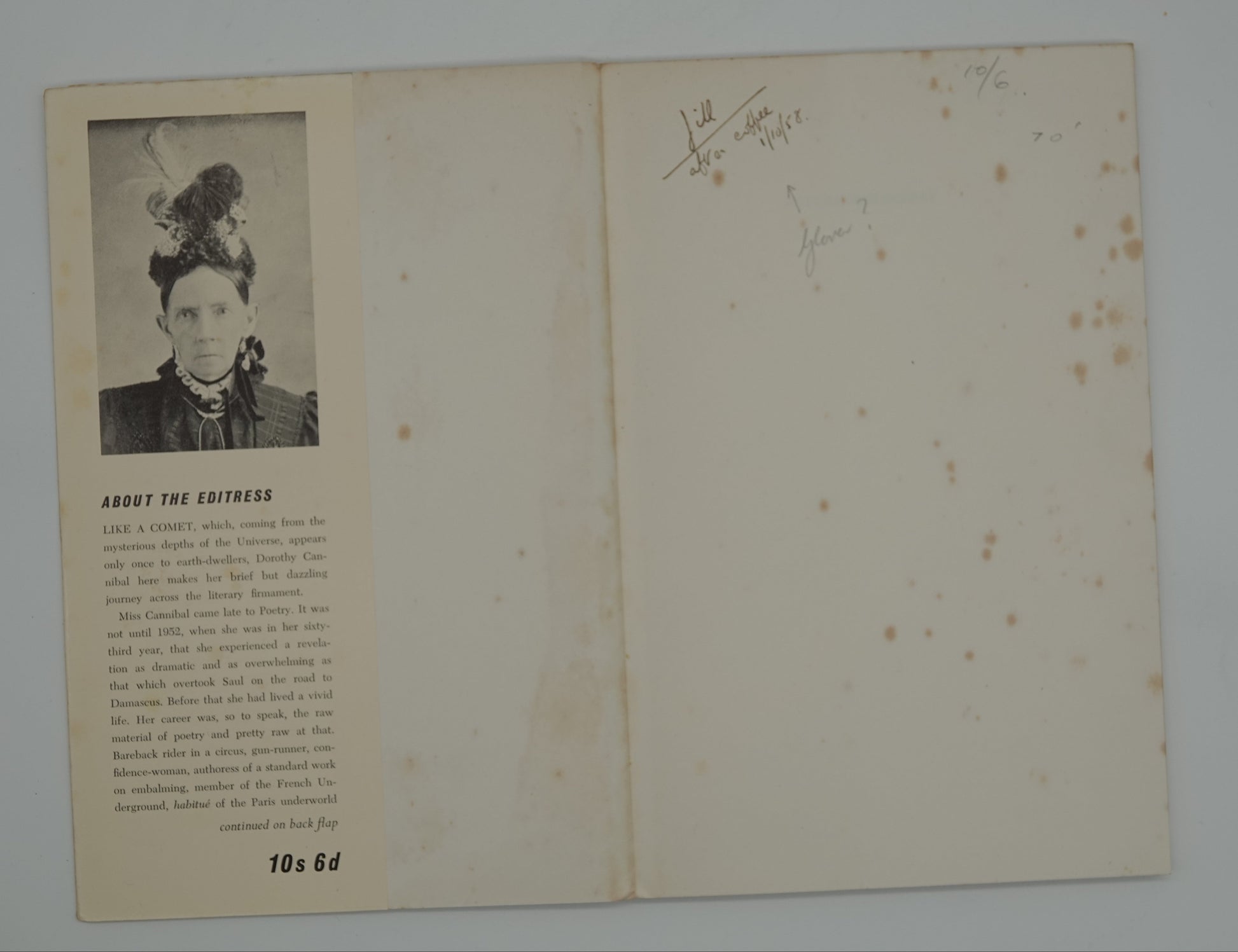 This is a lovely and important collectible - poetry by iconic NZ authors A.R.D. Fairburn and Denis Glover, edited by a fictional colourful character Dorothy Cannibal.
