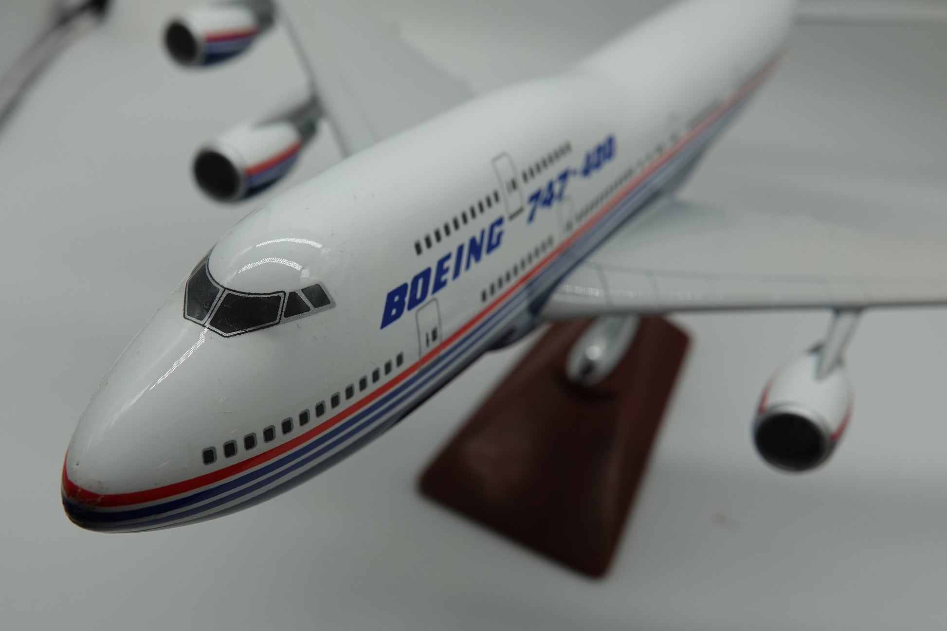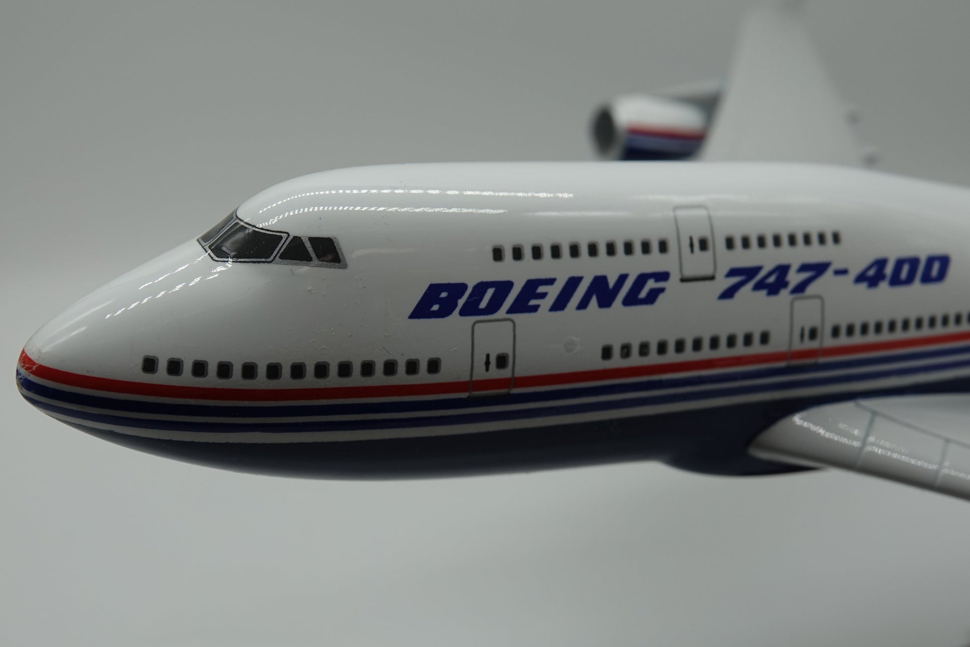 Here we have a diecast scale model of the Queen of the Sky, the mighty 747-400. The 747 was the worlds original jumbo jet, revolutionizing long haul travel. The 400 model was significantly enhanced with the addition of fuel saving winglets.
