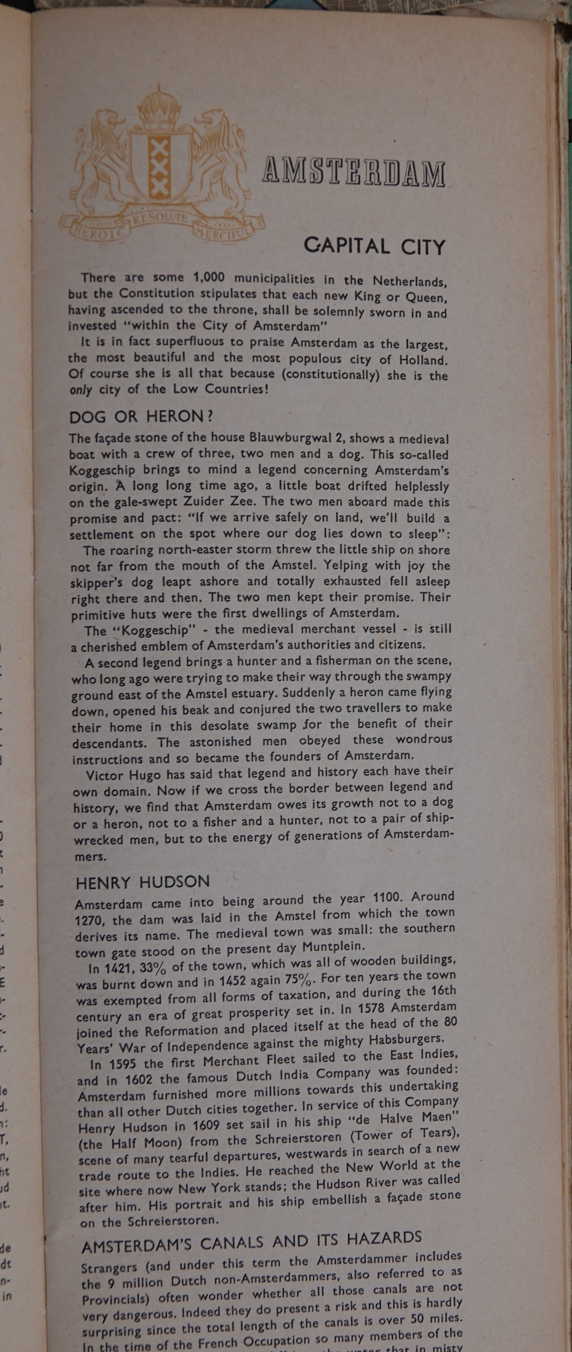 On one side it presents the most incredibly detailed hand coloured perspective of every building, canal, landmark and visitor attraction in the centre of Amsterdam, with the verso being a detailed map of the unique network of canals, roads, rail stations, parks and the port.